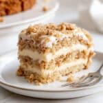 Bake in a preheated oven at 350°F (175°C) for about 50 to 60 minutes. You’ll know it’s ready when the crumble is golden brown and a toothpick inserted in the cake comes out clean or with just a few moist crumbs. If the topping browns too quickly, tent the cake loosely with foil to prevent burning — this happened to me once, so I keep an eye on it around the 40-minute mark.