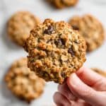 I store leftover Banana Oatmeal Chocolate Chip Cookies in an airtight container at room temperature for up to 3 days. If you want them chewy and soft the next day, adding a slice of bread inside the container does wonders to keep moisture in.