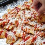 Freezing works okay if you keep the chicken and sauce mixture separate from the chips and cheese. I’ve frozen the BBQ chicken and marinara mix before and just reheated it fresh before making the nachos. Freezing assembled nachos tends to soften the chips too much, so I avoid that.
