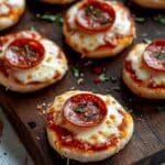 These Pepperoni Pizza Bagels are a quick and delicious school lunch option that combines mini bagels with classic pizza flavors. Topped with marinara sauce, mozzarella cheese, and pepperoni, then baked to perfection, they make a fun and easy meal kids will love.
