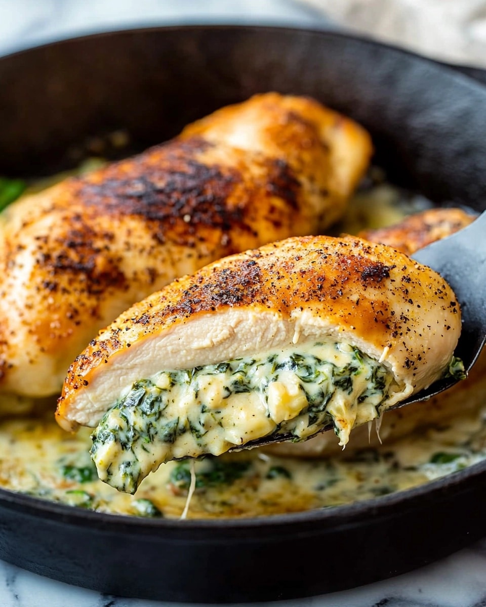 - Rest and Serve: Once cooked, remove the chicken from the skillet and let it rest for 5 minutes before slicing or serving. This helps retain the juices and keeps the filling creamy and delicious.