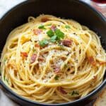 I usually avoid freezing carbonara since the eggs can change texture, but if you need to, freeze the pasta and bacon separately from the sauce for best results. Thaw and reassemble gently when you’re ready to eat.