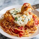Keywords: Chicken Parmesan, Chicken Parmigiana, Breaded chicken, Italian comfort food, Fried chicken, Melty cheese chicken