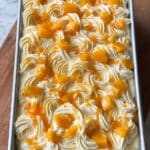 I haven’t tried freezing this cake with the mango whipped cream on top because the texture can get a bit grainy, but you can freeze the plain soaked cake layers ahead of time. Just thaw completely before adding the topping for best results.