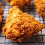 - Drain and Rest: Remove the chicken from the oil and place on a wire rack or paper towels to drain excess oil. Let the chicken rest for a few minutes before serving to allow the crust to set and juices to redistribute.