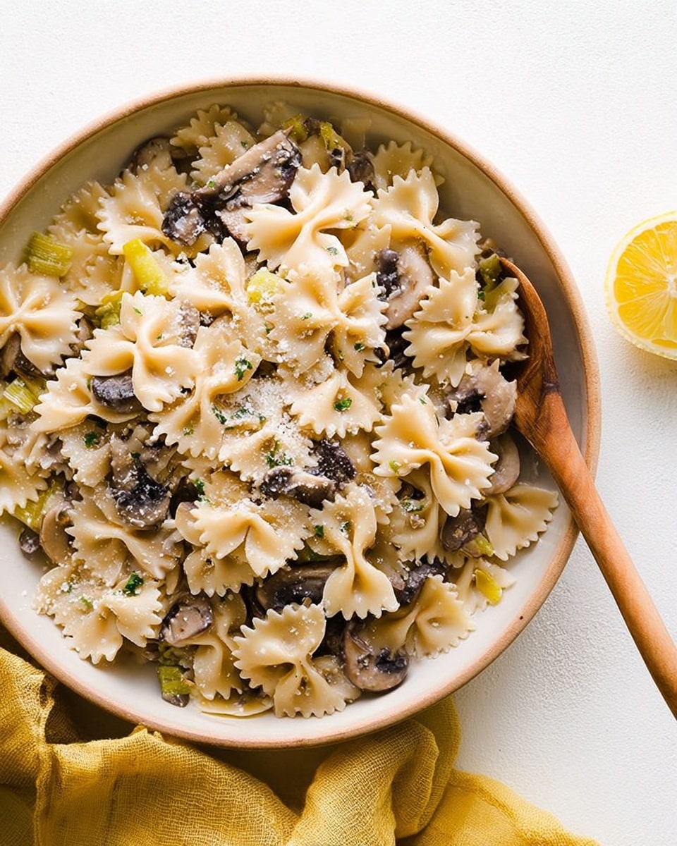 How to Serve Creamy Bow Tie Pasta with Mushrooms and Leeks Recipe
