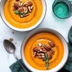 Keywords: Pumpkin soup, sweet potato soup, autumn soup, vegetarian soup, creamy soup, healthy soup, fall recipe