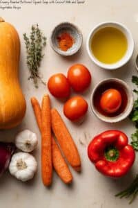 These ingredients work beautifully together to create a sweet, earthy, and warmly spiced soup. Keep an eye out for a firm, unblemished butternut squash — it makes all the difference once roasted. Fresh veggies and a good quality coconut milk bring everything together perfectly.