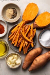 I’ve tried freezing baked sweet potato fries before, and they sometimes lose their crispness. If you want to freeze, flash-freeze them first on a tray before transferring to a freezer bag — then bake straight from frozen to crisp them back up.