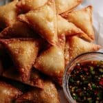 I always love to serve my samosas with a sprinkle of finely chopped fresh cilantro and a squeeze of lemon to brighten things up. Sometimes, I add a dollop of tamarind chutney or mint chutney on the side, which adds a sweet or fresh contrast to the rich, crispy samosas.