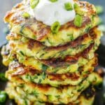 These crispy and flavorful Zucchini Fritters are a perfect way to enjoy fresh zucchini. Lightly seasoned and pan-fried to golden perfection, they make a delicious appetizer or side dish served with a dollop of sour cream.