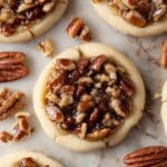 - Add Pecan Filling: Spoon a generous amount of pecan pie filling onto the center of each flattened sugar cookie dough ball.
