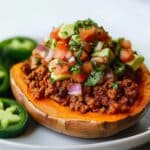 Keywords: taco stuffed sweet potatoes, ground beef recipe, baked sweet potatoes, easy weeknight dinner, Mexican-inspired dish