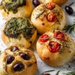 - Add Toppings: Spread a teaspoon of basil pesto on some muffins, sprinkle rosemary and sea salt on others, and top the rest with halved cherry tomatoes, olives, and a sprinkle of oregano.