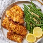 The easiest swap is to leave out the Parmesan and sprinkle some nutritional yeast over the green beans before the final few minutes of roasting. Nutritional yeast gives you that cheesy, umami flavor without dairy, making the recipe totally vegan-friendly and still delicious.