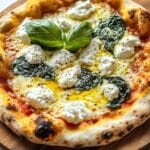 This Greek Roasted Garlic Spinach White Pizza offers a delightful combination of creamy cheeses, vibrant spinach, and aromatic roasted garlic on a crisp pizza crust. Perfect for a flavorful and easy meal, it blends Mediterranean ingredients like feta and fresh basil for an authentic touch.