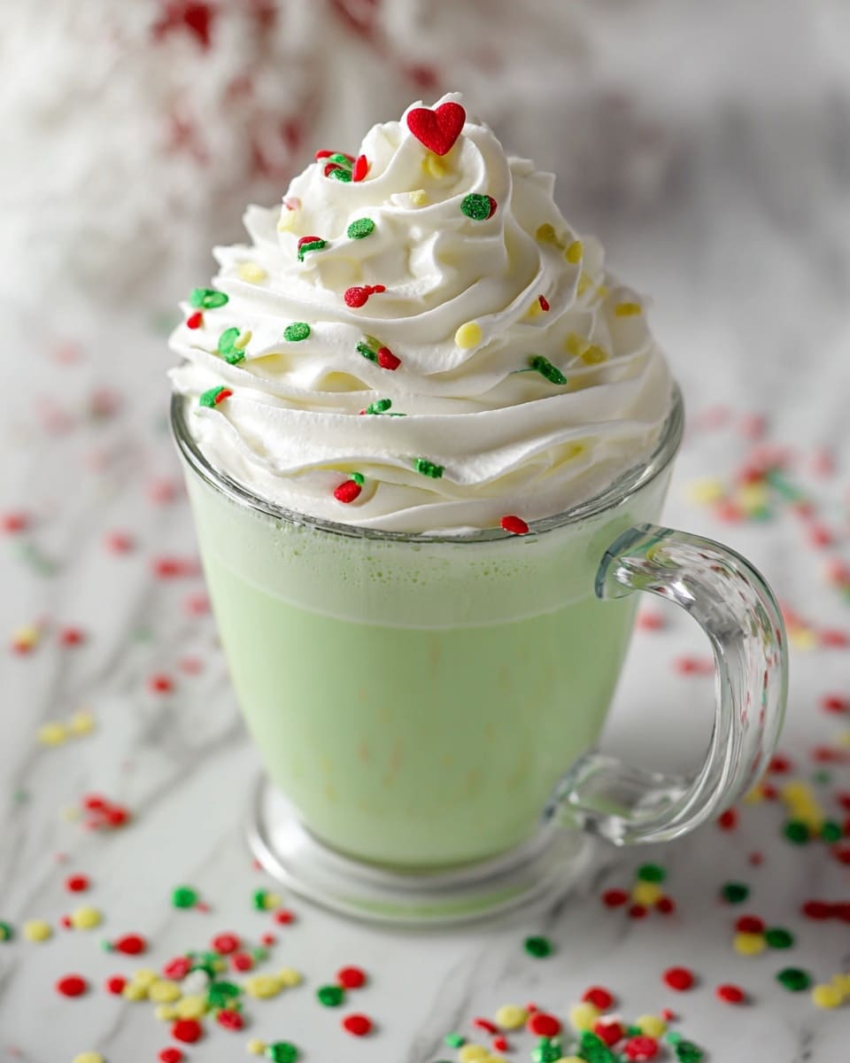 Serve it in clear mugs with festive garnishes like whipped cream, green sugar sprinkles, or peppermint candies. Consider adding a cinnamon stick for a warm aroma—presentation really amps up the fun factor!