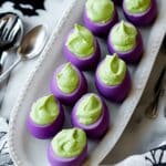 These Halloween Deviled Eggs combine the creamy texture of avocados with classic deviled egg flavors, enhanced with a spooky twist of colorful food coloring to create a vibrant and festive appetizer perfect for Halloween parties.