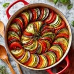 Keywords: ratatouille, classic French recipe, vegetable stew, baked vegetable dish, healthy vegetarian dinner, Mediterranean vegetables, summer recipe