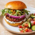 To round out the meal, I like pairing these burgers with sweet potato fries or a crisp cucumber salad with lemon vinaigrette. Roasted veggies or a simple mixed green salad also work beautifully and keep things light and fresh.