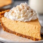 Because it’s a no bake cold pie, reheating isn’t necessary or recommended. But if you’re craving that cozy pumpkin flavor warm, serve a slice alongside a cup of hot coffee or drizzle a little warm caramel sauce on top. That combo really hits the spot without needing to heat the pie itself.