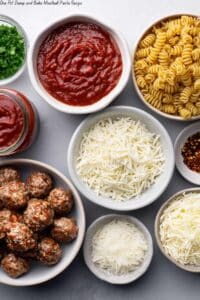 Nope! One of the best parts of this One Pot Dump and Bake Meatball Pasta Recipe is that you can add uncooked pasta directly into the baking dish. The water and marinara sauce cook it to perfection while baking, making it super easy and mess-free.