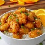 This vibrant Orange Chicken recipe features tender chicken thighs coated in a light cornstarch batter, fried to crispy perfection, and tossed in a tangy, sweet, and slightly spicy orange sauce. Perfectly balanced with fresh orange juice and zest, garlic, and a touch of heat from chili flakes, this dish is a delicious blend of savory and citrus flavors that’s great for weeknight dinners or special occasions.