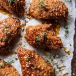 Absolutely! Skin-on chicken will add extra flavor and crispiness. Just adjust the baking time slightly since skin-on pieces might take a bit longer to cook through. Also, keep an eye to ensure the coating doesn’t burn due to the extra fat.
