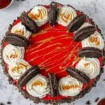 Indulge in this luscious Red Velvet Oreo Cheesecake featuring a rich Oreo cookie crust, smooth red velvet-flavored cream cheese filling studded with Oreo pieces, and topped with decadent melted chocolate and whipped cream. Perfectly creamy, visually stunning, and bursting with classic flavors, this cheesecake makes a show-stopping dessert for any special occasion.