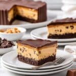 I love topping this pie with a handful of chopped Reese’s Peanut Butter Cups for an extra dose of peanut butter goodness. A light sprinkle of sea salt flakes always elevates the chocolate’s richness and balances the sweetness perfectly. If you’re feeling fancy, a dollop of whipped cream never hurts!