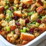 Keywords: Thanksgiving stuffing, sausage stuffing, holiday side dish, Italian sausage stuffing, savory stuffing recipe