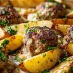 I can’t recommend this Sheet Pan Biftekia with Lemony Potato Wedges Recipe enough—it’s one of those dishes that brings a little Mediterranean sunshine right into your kitchen. When I first made it, I loved how everything cooked together on one tray, cutting down on the usual evening kitchen chaos. The biftekia—Greek-style beef patties—are juicy, flavorful, and pair perfectly with those crispy, tangy lemony potato wedges. It’s a crowd-pleaser anytime you want something comforting but still fresh and bright.