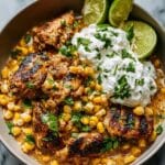 For sides, I usually keep it simple with some warm tortillas to scoop up the saucy chicken or a fresh salad with avocado and tomatoes. Rice, especially cilantro lime rice, complements the street corn flavors really well and helps balance the meal. Roasted sweet potatoes or grilled veggies also make great accompaniments.