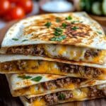This Smashburger Quesadilla recipe combines the savory flavors of seasoned ground beef with melted cheddar or American cheese inside crispy flour tortillas. Easy to prepare and perfect for a quick lunch or dinner, these quesadillas can be customized with optional toppings like pickles, diced onions, and burger sauce for an extra burst of flavor.