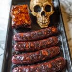 Keywords: Smoked ribs, Cajun sausage, Halloween recipe, BBQ ribs, smoked meat, spooky food, apple cider ribs
