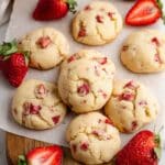 These Strawberry Cheesecake Cookies feature a luscious cream cheese filling infused with strawberry extract, sandwiched between soft, strawberry-flavored cookies bursting with fresh chopped strawberries. Perfectly balanced with a tender crumb and a creamy center, these cookies are a delightful treat for any strawberry lover.