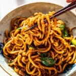 For special occasions, I’ve served this Yaki Udon Stir Fry in individual lettuce cups for a fun, hand-held version. Another time, I plated it over a bed of steamed baby spinach for extra greens and vibrant color. You could also sprinkle crushed peanuts or chili crisp on top if you’re feeling adventurous and want a crunchy, spicy twist.